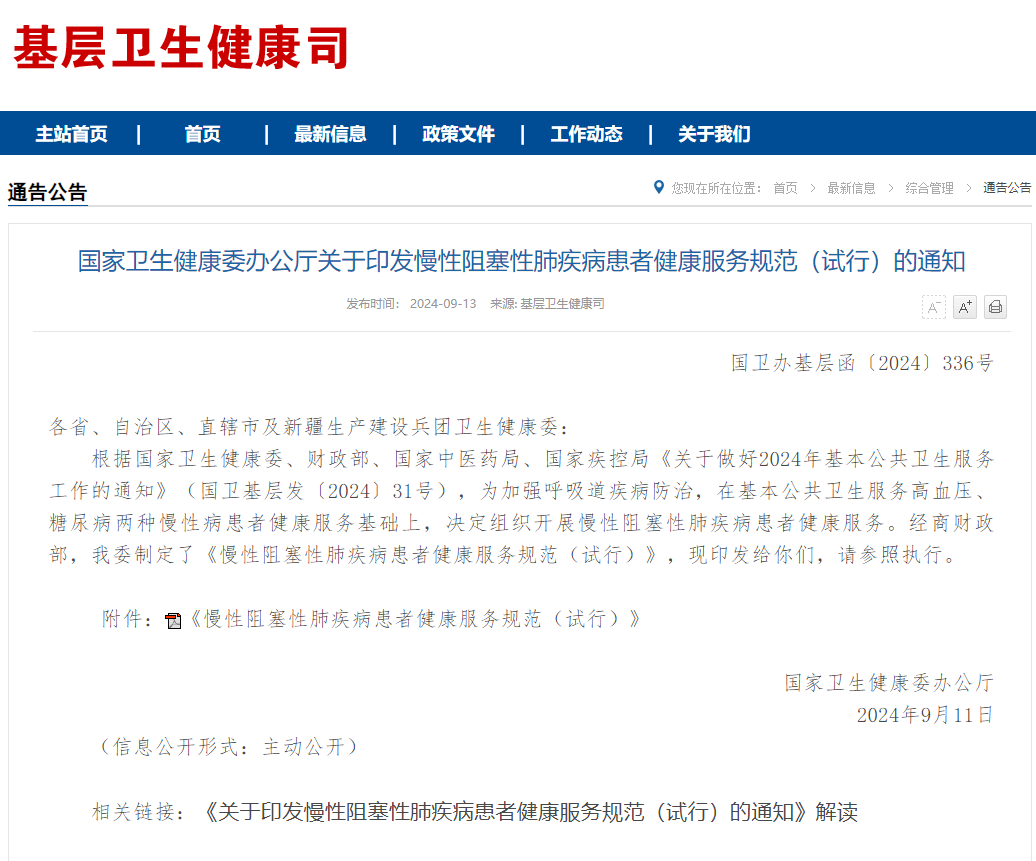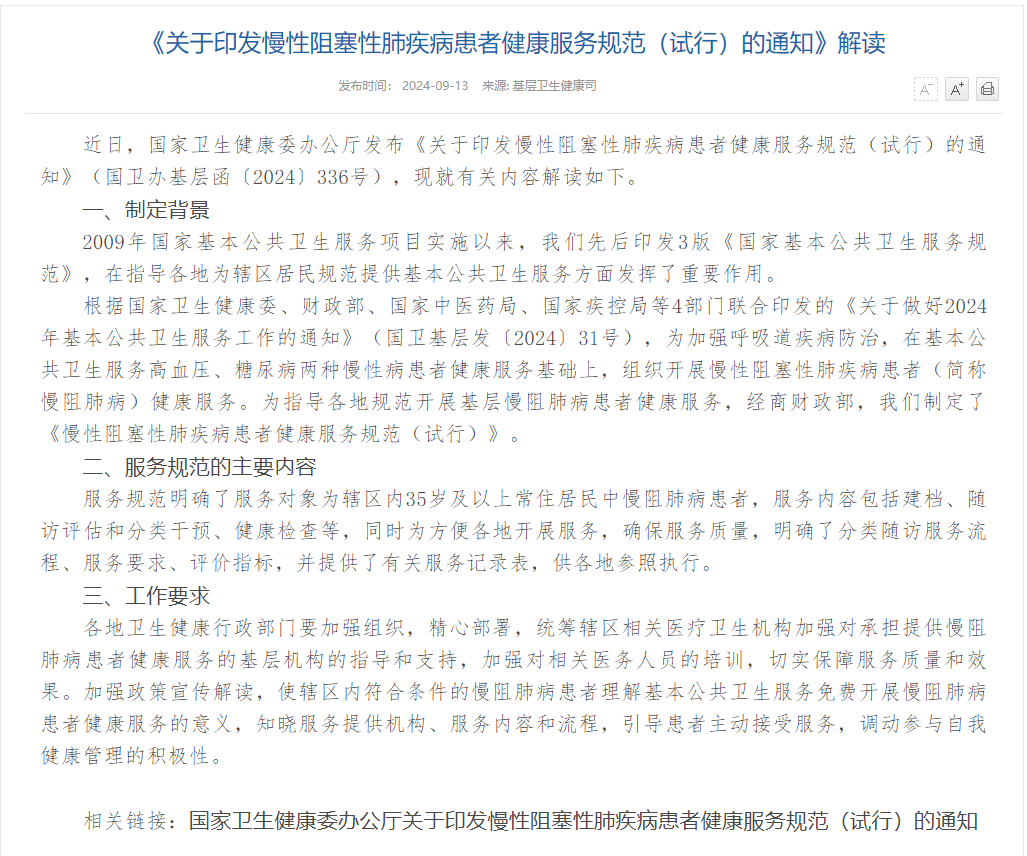 《關于印發慢性阻塞性肺疾病患者健康服務規范(試行)的通知》解讀